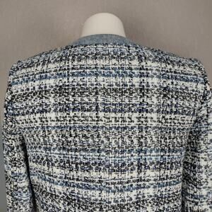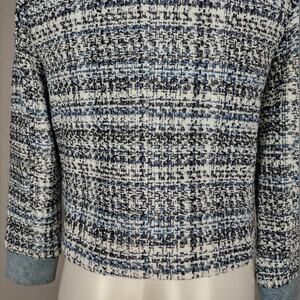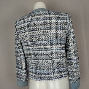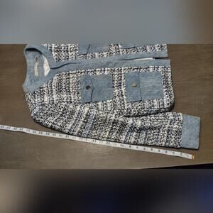 Alice + Olivia Avis Blue Tweed Denim Jean Combo Patch jacket Size Medium