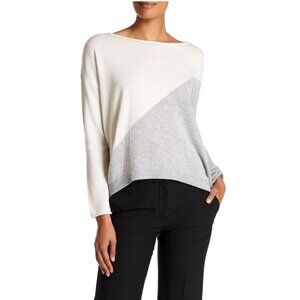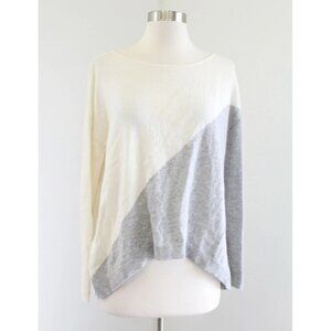 Alice + Olivia Base Abbie Color Block Hi Lo Sweater Wool Blend Ivory Gray Sz S
