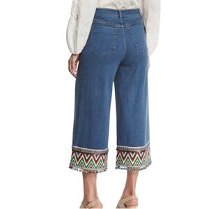 Alice + Olivia Beta Crop Wide Leg Blue Jean Embroidery Sequins Tassels in Size 28.
