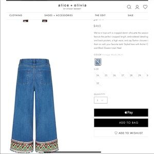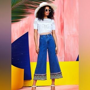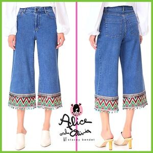 Alice + Olivia Beta Wide Leg Embroidered Gaucho Denim Jeans Pant
