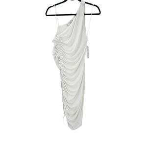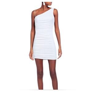 Alice + Olivia Binnie Asymmetric Ruched Mini Dress Off-White Size 10 NWT