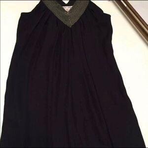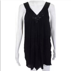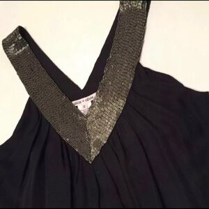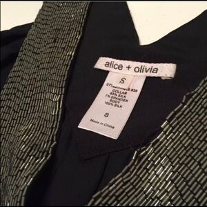 Alice & Olivia Black 100% Silk & Silver Shift Beaded Dress Small