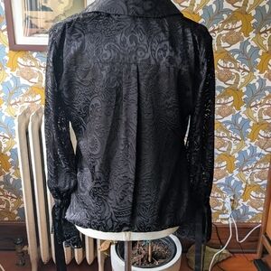 Black button down with elegant pattern. Long sleeves with styled cuffs.