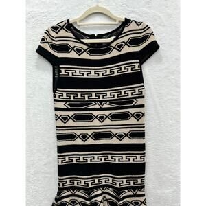 Alice + Olivia Black & Cream Aztec Darby Drop Waist Knit Sweater Dress Size S