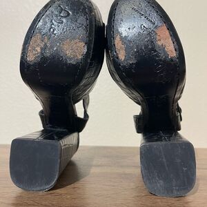 Step out in style with these chic black croc-embossed platform heels. Perfect for any occasion, these shoes offer both elegance and comfort.