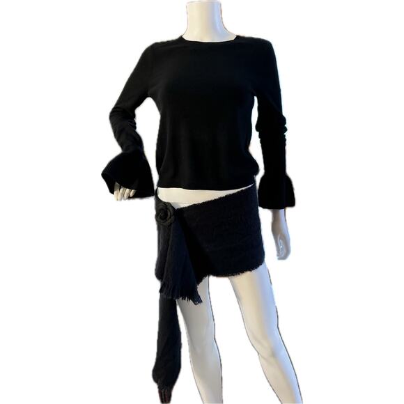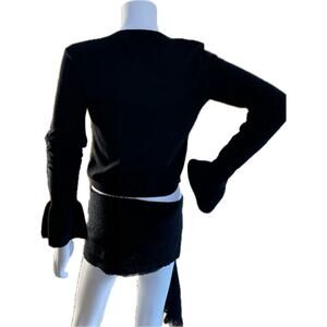 Another bonus is that this cropped black sweater truly retains its shape. Delicately feminine Tulip bell sleeves are ribbed - with the ribbing going up the inner sleeve and continuing down the sides of the sweater.