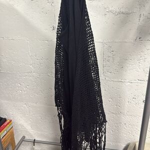 Alice + Olivia Black Knit Halter Tank - Fringe Knit Layered Attachement - Size M