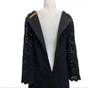 Excellent preowned condition Alice + Olivia Bell Sleeve Lace Dress in Black, size 6.