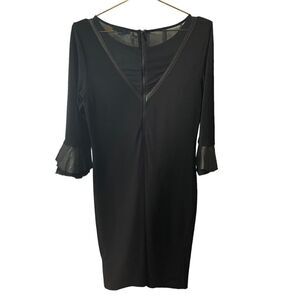 Alice & Olivia Black Lamb Leather Cuff Bell Sleeve Raw Edge Hem Dress Size L