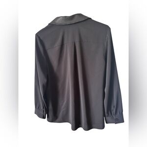 Alice + Olivia Black Long Sleeve Button Down Blouse Leather Collar sz M