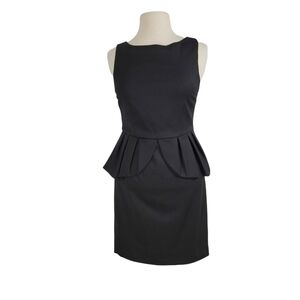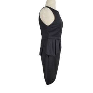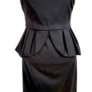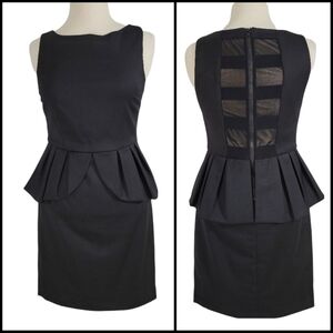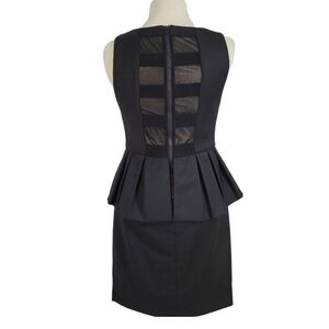 Alice + Olivia black sleeveless dress with peplum ruffle waist and black sheer back with accent satin stripes and zipper. Excellent condition.