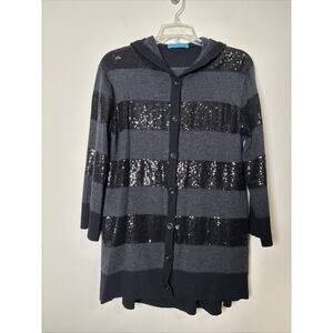 Alice + Olivia Black Sequin Hooded Cardigan Sweater Size M Wool Fairy Goth