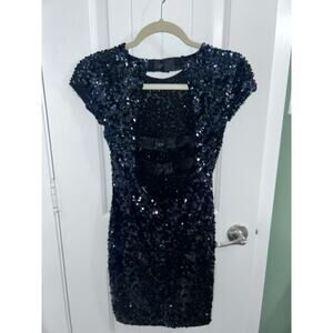 Alice + Olivia Black Sequin Mini Dress — Open Back Cap Sleeve Party Glam Prom ✨