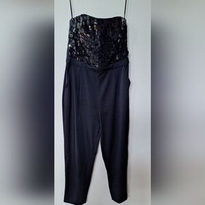 Alice + Olivia Black Strapless Jeri Sequin Crop Jumpsuit. Womens size M 8/10
