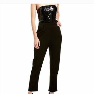Alice + Olivia Black Strapless Jeri Sequin Crop Jumpsuit. Womens size M 8/10