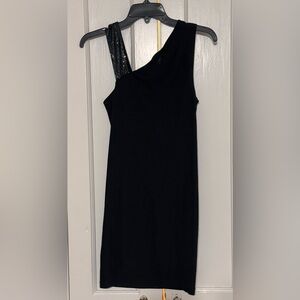 EUC Alice + Olivia Black Studded Asymmetrical Slip Dress