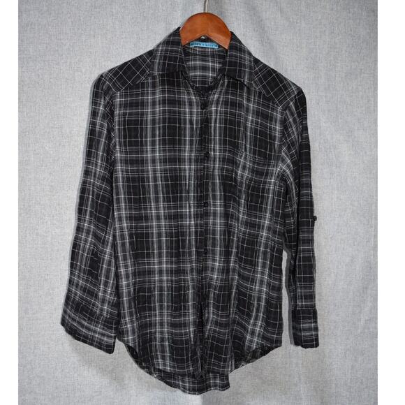Alice + Olivia Black White Plaid Button Down Shirt XS