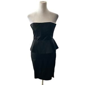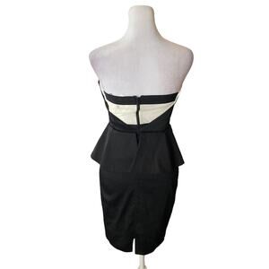 Alice + Olivia Black & White Strapless Peplum Sheath Dress Size 2