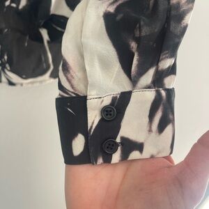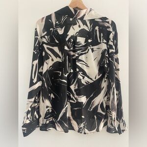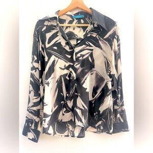 Alice + Olivia Black and White Abstract Graphic Button Up Collar Blouse size 4