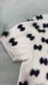 Adorable sweater with black bows on a white base. Features a stylish black collar. Collar is removable. There is one call out mark, please see photos and videos. PTP 16 inches.
