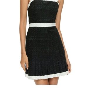 Alice + Olivia is styled with a square neck, pleated skirt, and back zip closure.