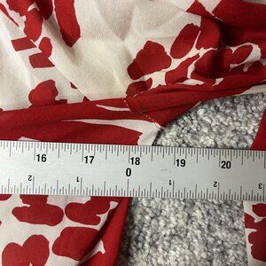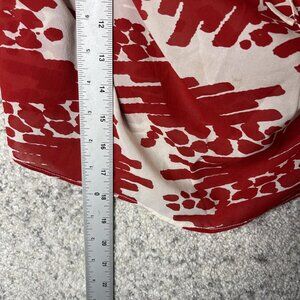Features a red and white abstract brushstroke pattern on a lightweight, flowy fabric.
