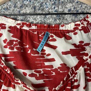 Alice + Olivia Blouse Womens Medium Red White Silk Peasant Top Boho Long Sleeve