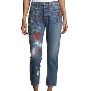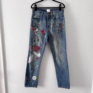 Alice + Olivia Blue Embroidered Ankle Jeans