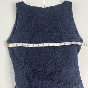 Alice + Olivia Navy Blue Sleeveless Textured Floral Lace Keyhole Full Length Maxi Dress Size 4 Hemmed