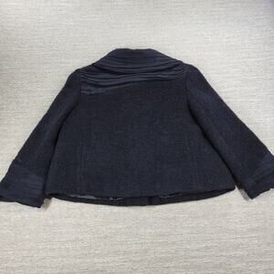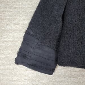 Alice + Olivia Boucle Wool Jacket Womens M Black Silk Crepe Trim Cropped Buttons