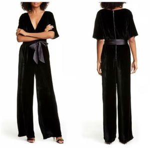 Alice + Olivia Breanna Wrap Front Velvet Jumpsuit Black