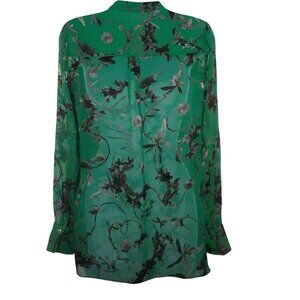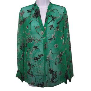 Alice & Olivia Burnout Velvet L-Sleeve Kelly Green/Grey Whimsy Sheer Blouse XS