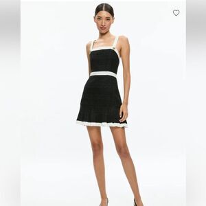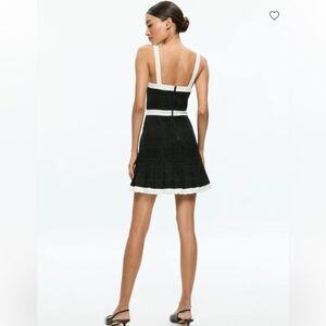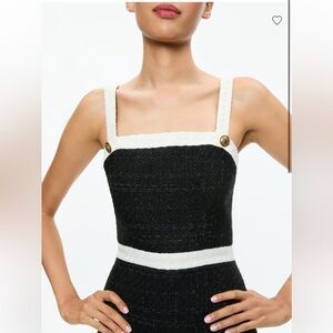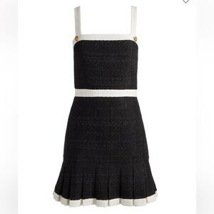 Size 10. New with extra button. This black and white mini dress gets all the details right: The retro square neckline, the pleating, the tweed fabric and the flattering fit. We love it with every type of shoe from ballet flats to sandals and beyond.