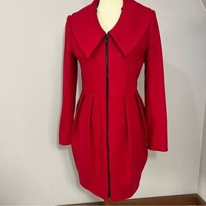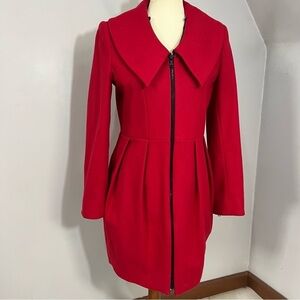 Alice + Olivia Campbell red wool coat medium fit & flare cinched waist peacoat