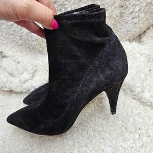 Alice + Olivia Camryn Black Suede Leather Ankle Booties size 37.5