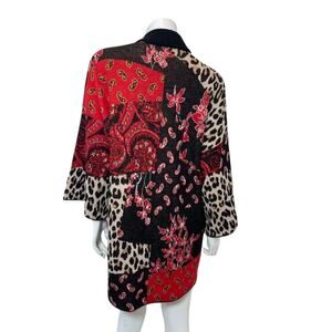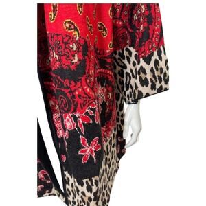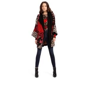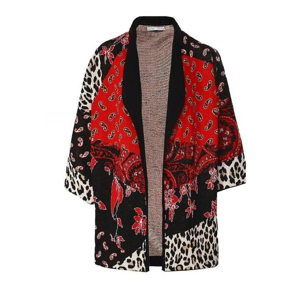 Alice + Olivia Cardigan Hester S RED BLACK Paisley Cheetah Patchwork Oversized