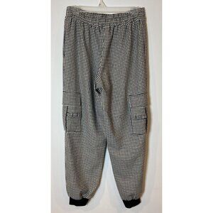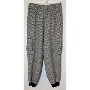 Alice + Olivia Cargo Jogger Pants Black White Houndstooth Wool Blend Small S