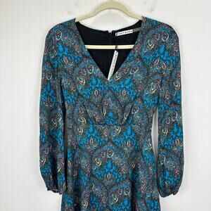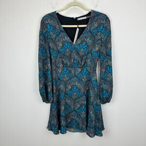 Alice + Olivia Cary Mini Dress Ornate Multi Boho Viscose Long Sleeve US 0 NWT