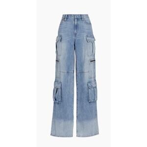 Alice + Olivia Cay Baggy Cargo Jeans 27 Brea Blue Cotton Blend Relaxed Fit