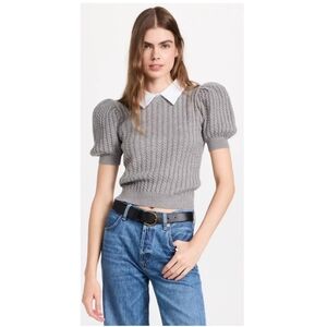Alice + Olivia Chase Removable Collar Cable Knit Puff Sleeve Sweater