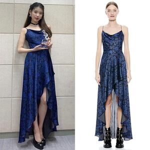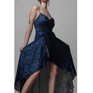 Alice + Olivia Christina Hi‑Lo Dress Size 6 Winter Palace Cowl Neck blue black