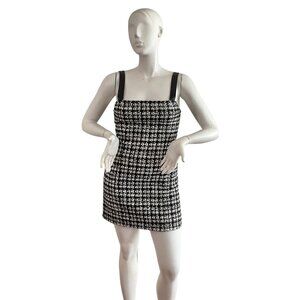 Alice + Olivia Classics Bonita Tweed Leather Widestrap Dress Black White 12