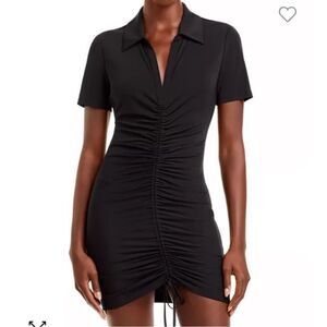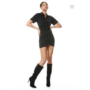 Alice + Olivia Classics Marsha Ruched Polo Collared Mini Dress Black Size Small