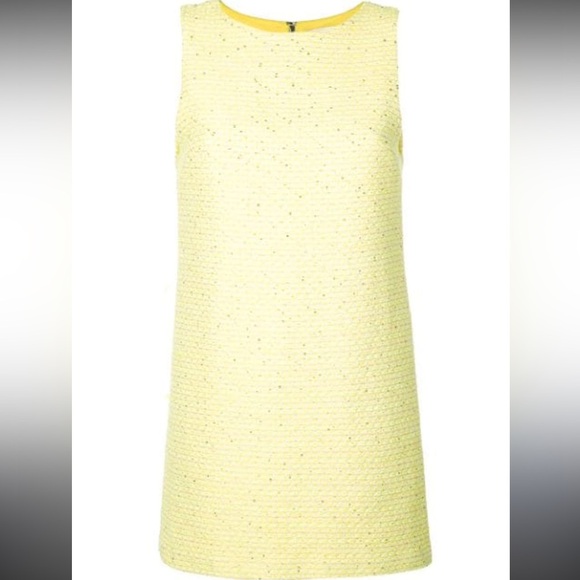 Make a statement in this stunning Alice + Olivia Clyde mini dress, crafted from luxe neon yellow bouclé tweed with delicate sequin embellishments throughout. Fully lined for comfort and structure, this dress features a classic sleeveless shift silhouette with a hidden back zip. Bright, fun, and flattering — perfect for weddings, spring parties, or any event that calls for a pop of color and sparkle.