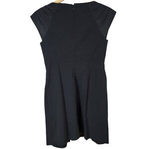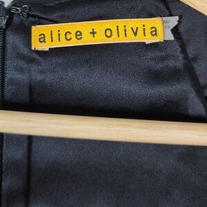 Alice + Olivia black lined cap sleeve scoop neck bow cocktail dress. Pleats on the shoulders. Great Little Black Dress (LBD). Classic. Hidden back zipper and hook closure. Excellent pre-owned condition with no stains or tears.