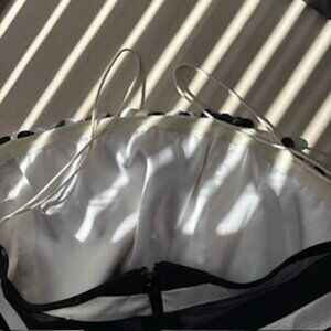 100% silk with Full sequined bodice front and mesh back. All sequins in tact.