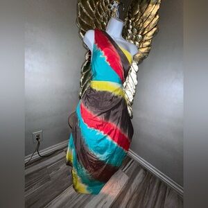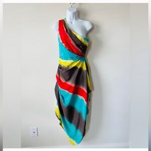 Alice + Olivia Colorful One Shoulder Tie Dye Asymmetrical Silk Dress Size XS