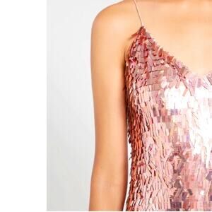 Alice + Olivia - Contessa Embellished V Neck Dress in Iridescent Pink Rose Gold