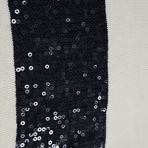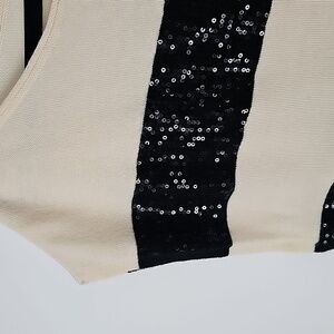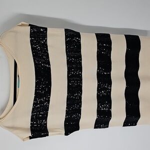 Alice + Olivia Cream Knit w Black Sequins Striped Sleeveless Tunic Sweater Top