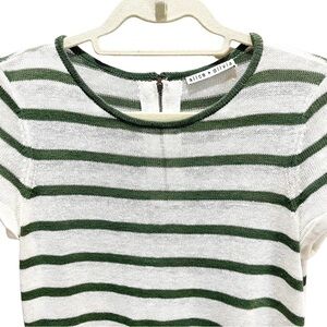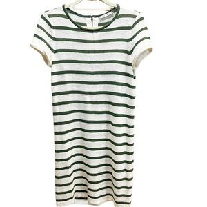 Alice + Olivia Cream & Olive Striped Tee Shirt Dress 100% Linen Knit Sz M